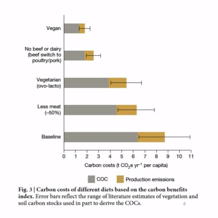 This is a bit of a complex graph, but it represents emissions that each diet type is responsible for. As you can see, the baseline diet has 2-4x more emissions! Baseline represents an American diet in which meat is consumed daily.