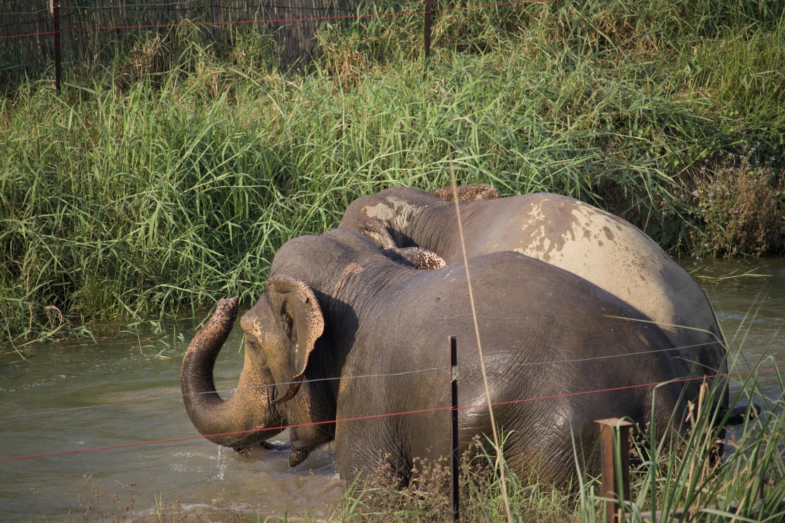 When not in the jungle, Eva and Lhamo are kept in their enclosure together where they can dust, eat, or go to relax and play in their pool. With their mahouts living on the sanctuary grounds next to the enclosure, the safety of both the elephants and the humans interacting closely with the elephants is a top priority.