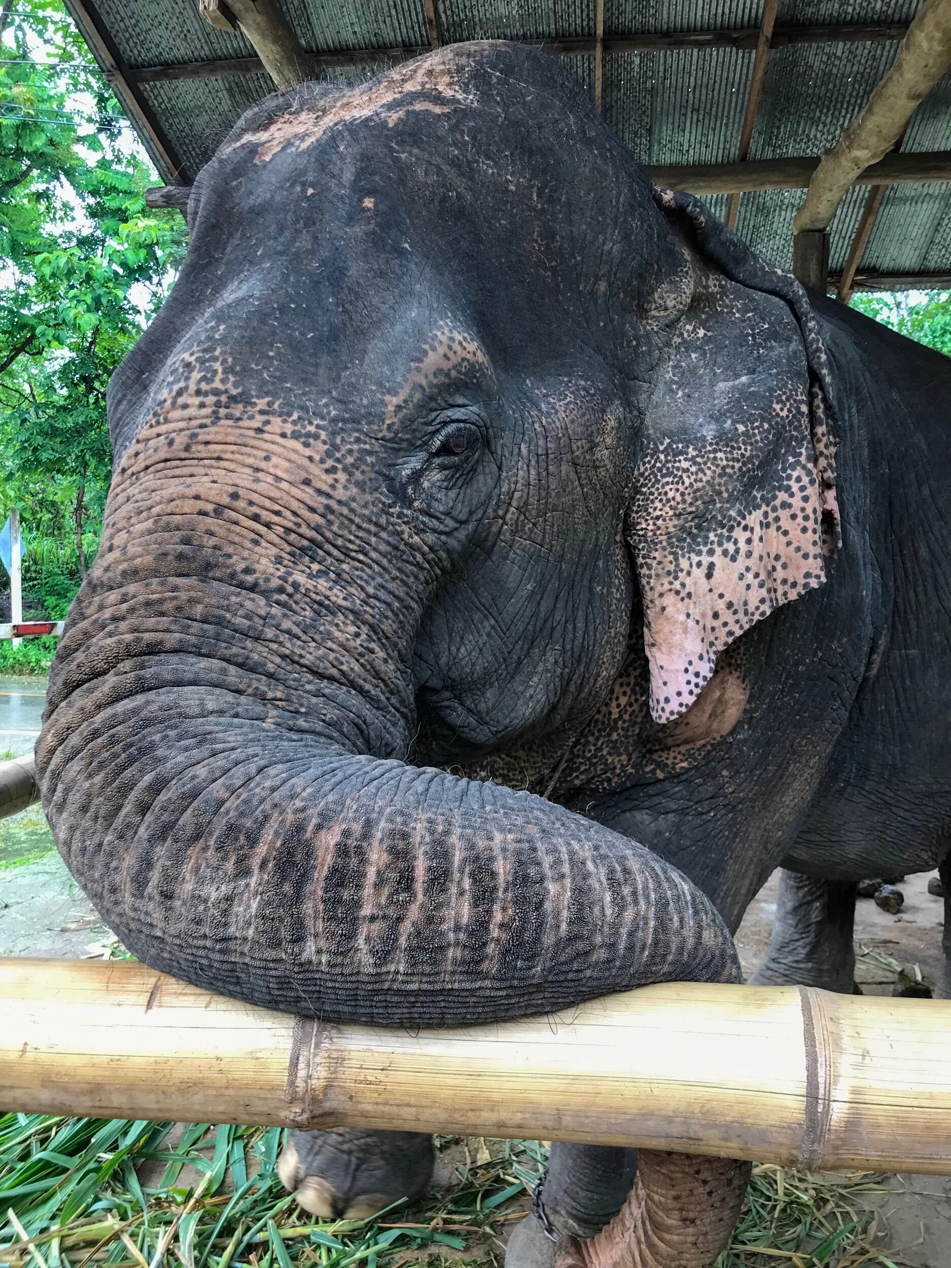 Before getting into this complex topic, I want to start with a disclaimer. The management of elephants in captivity is challenging, to say the least. This blog post is purely a recount of my observations and thoughts after visiting four elephant camps in Pai, Thailand, and specifically centered around two elephants in particular. I am in no way speaking for the larger population of Thai elephants or Asian elephants as a whole, as management of elephants differs greatly by region and country. I wholeheartedly believe that when possible, elephants should be free of all physical shackles and restraints that inhibit a life of freedom and autonomy. Luckily, many sanctuaries are able to achieve this, and I urge everyone who is considering visiting elephants to seek out a sanctuary that believes in a hands off experience. This allows the elephants to express their natural behaviors and in turn are home to some of the most psychologically sound and healthy elephants. Chaining is not and should never be a long term solution to managing elephants and instead should only be utilized when absolutely necessary. Additionally, I don’t have all of the answers and I’ll never pretend like I do. This blog post is just my honest thoughts after a day where I felt I gained a lot of insight and perspective. I hope nobody misunderstands or takes this post as me implying elephants on chains is a wonderful thing, but instead sees that sometimes it is a necessary precaution and should not be stigmatized as it only makes the lives of the elephants and those caring for them more difficult.