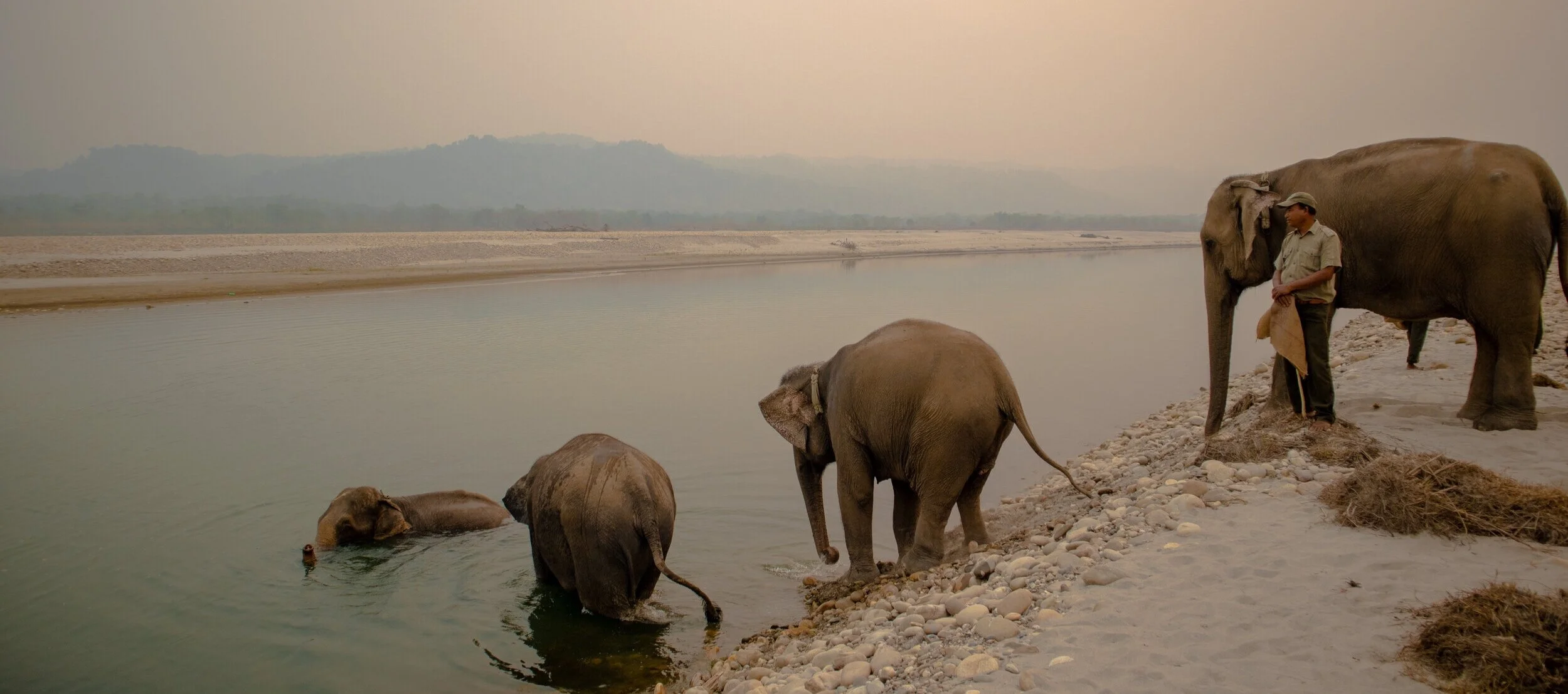 Tiger Tops elephants at the river, © Danielle Carnahan 2021